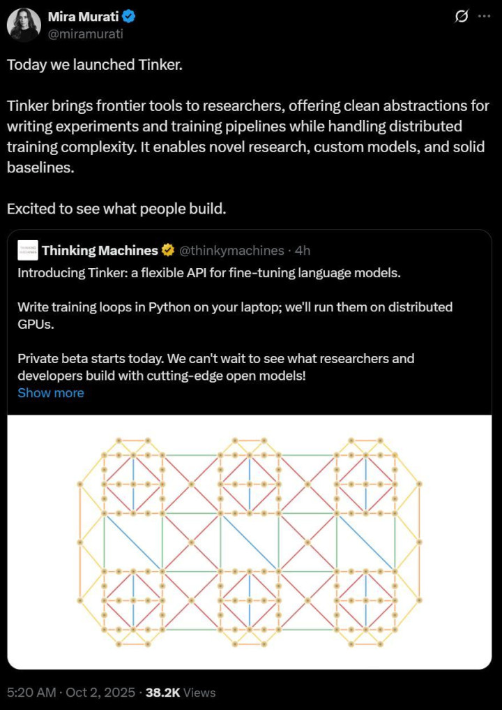 Thinking Machines Lab终于首发第一款产品,Tinker!