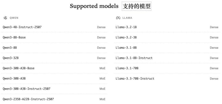 Tinker目前支持Qwen系列和Llama系列的模型。